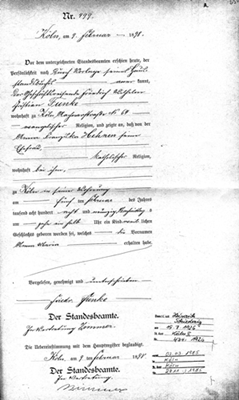 | Mutter-leiblich | Friederike Luise Kronenberg * 21 Apr 1827, + > 1895 |
