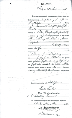 | Vater-leiblich | Christian Wilhelm Funke * 19 Mai 1835, + < 1895 |
